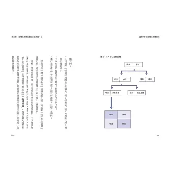 本書提供近67張圖表,以直觀方式幫助讀者理解和應用結構化戰略思維。這些圖表將抽象概念具體化,使思考過程更加清晰,如「3-3原則」圖表展示了如何深入挖掘問題細節,幫助讀者將複雜的思維方法變得易懂易學。
