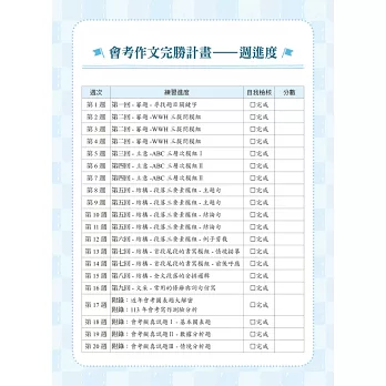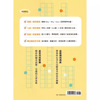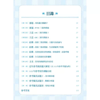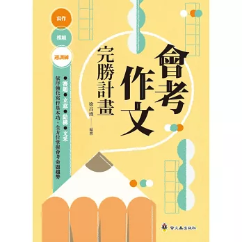 網路世代的寫作教學,特別重視能在大量資訊中提取核心內容,並通過條理清晰、符合邏輯、具創意深度的論述來表達自己的見解,且能在文章中呈現批判性思考和解決問題的能力,昌瑋老師的《會考作文完勝計畫》在這方面,可說是一本可以厚植寫作功力的絕佳祕笈。最後,我要特別強調的是,書末的會考作文題目模擬了近年來的作文考試命題趨勢,提供校園師生如何應對的實務策略,除了可作為現場教師瞭望作文教學新方向外,也為準備會考的考生提供了架構完善、內容新穎的作文練習本。尤其是現場老師為了作文抽查傷透腦筋時,本書無疑提供了最現成、最符合趨勢、最能提升學生思辨能力的題目範本!