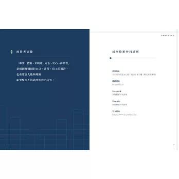 「診所開業」對於醫師而言是一種創業,必須遵循醫療相關法規、籌集資金、選址、採購、裝潢等,全方位評估如何以合理的投入取得適切的醫療品質和良好的治療效果。開業也像經營一家公司,不僅需要縝密的營運管理機制,還需要識人善用,並了解社群媒體的應用,甚至要錄製影片做好民眾衛教工作......這些都要求我們始終保持謙卑的學習心態。