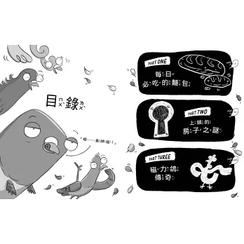 (1)系列中的每一本書,都包含三個非常搞笑、有一點蠢和引人入勝的謎團——以及滿滿的麵包屑主題!(鴿子的最愛,一定要有的!)