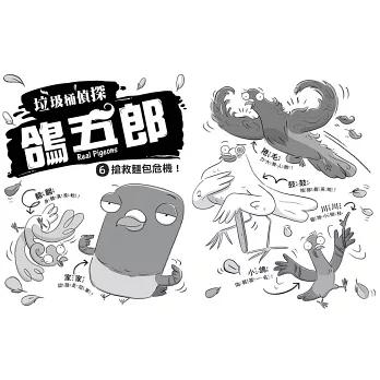 《垃圾桶偵探 鴿五郎》──光是看到這個書名,就足以使得孩子們跟大人都忍不住發笑,再看到鴿子躲進垃圾桶,竟是為了開偵探會議的設定,就覺得真是腦洞大開!到底是怎樣蠢萌又搞笑的一本書啊?(其實光看到封面那張鴿子臉……對,臉最大的那隻!小編就已經先愛上這本書一半了!)