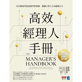「了解競爭情勢是最基本的,但光有想做事的慾望還不夠。領導者如果無法有效執行,策略再好也不會成功。」策略大師 麥可‧波特如此說。《高效經理人手冊》是一本適用各種產業、各種情境、各種職級的管理工具箱,只要有心完成事情,它是你最實用的指南。