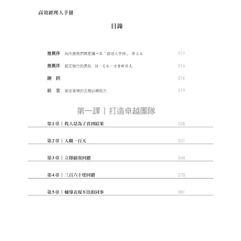 ①帶團隊:從找新人、帶人到和人說再見,都有方法可依循。包括:找新人用的「雇用計分卡」+面試必問10題、新手入職10件事、績效考核