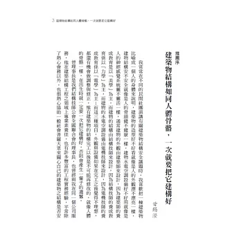 身為專業結構技師的作者以其高度的分享性,結合了豐富的學養及累積三十餘年的實務經驗,用一般消費者懂得的語彙,從預售屋、成屋、中古屋及房屋結構等構面做了許多課題的深入淺出解說,相信對準備購屋者是一本現學現用的選屋、購屋的好指南;對一般消費者來說,也是跨越專業門檻,了解建築、房地產或評估建築物好壞的一本好入門書。