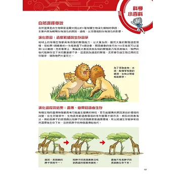 設有「科學小百科」單元,藉由X星際探險隊隊員的生動對話和淺顯易懂的文字,來介紹自然選擇學說是什麼、生物演化的原因與過程、不同類型的演化特色與差異性、什麼是顯性基因和隱性基因、基因突變發生的原因、常見的遺傳病有哪些、生物競爭和共生關係的種類、人類與動物擁有的痕跡器官有哪些、目前有哪些動物已經滅絕及瀕臨滅絕、如何防止動物滅絕等超炫知識,讓小朋友有系統的學習。