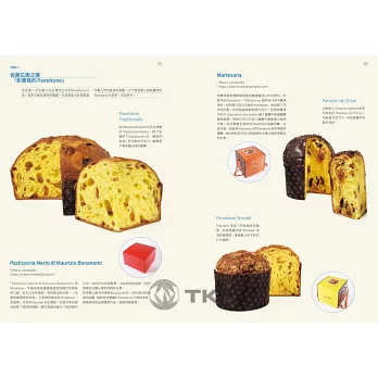 為了續種並妥善利用麵團,介紹以Panettone或Pandoro麵團變化製作的各種發酵糕點-Colomba、Bauletto…,還附上義大利的麵包章節-山的圓麵包、農夫麵包、義式可頌…,並介紹延續傳統至今的老字號Panettone、關於Panettone和Pandoro的法規,以及「Re Panettone」競賽評審表…,帶領所有讀者深入瞭解Panettone & Pandoro的奧秘,絕對是專業人士與美食愛好者必須收藏的專書。