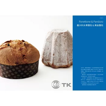 起源於米蘭的Panettone和維羅納的Pandoro,都是用「原種Lievito madre」製作的大型發酵糕點,具有濃郁的蛋黃、奶油和糖的奢華風味,以及輕盈濕潤的口感。Panettone除了傳承至今的「Classico 經典製作法」,近年來更衍伸出「Moderno 現代製作法」。二者的外觀、風味、製作都有顯著的不同,本書中分別有詳細的操作圖解與技巧細節,包括原種的水浸、續種、中種、Pandoro麵團使用的Biga種…。
