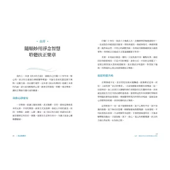 記得要放下一切,放下疑惑與執著,放下心裡的不安,放下知 識的傲慢,放下無名的恐懼,輕輕鬆鬆地聆聽閱讀。你會發現,不用試著找出原因,不必理解所有道理,不需理會疑惑所在,不強求 解釋衝突緣由,只要放鬆、放下、放心,寬心的聆聽閱讀,扶正的力量自然而現,在你我之間。