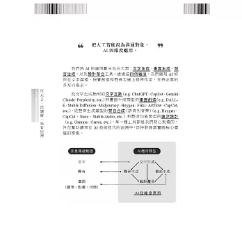 本書提出的方法是分層次運用AI。有些工作確實AI做的比人好,你我就真的別做了;有些工作可以讓AI作為顧問,給你我出謀劃策;有些工作則可以讓AI當作好助手,幫你我處理掉那些繁瑣費神的鳥事。