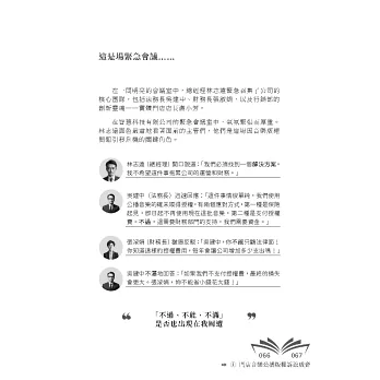 現在,我會向這群朋友說,請翻開本書的「總經理寫了一本童書」,它會讓你在不傷肝的情況下,完成一本書。你可能會好奇地問:「那這樣所有人不都是可以寫出一樣的書了?」還好,那一天還沒有來到。就像這本書,單靠宇智愛一「人」,也是無法完成的,若缺乏了徐竹先、吳嘉偉兩人的智慧,本書就少了一味兒。
