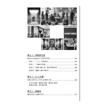 舉個書中的情境:「社群經營與人力負擔的難題」為例。業務副總想要在不增加人力負擔下,做更廣泛且多元化的社群經營。但相關部門都覺得自己已經夠忙了,沒時間引入短影音及開箱影片。怎麼辦?於是業務副總開始尋求向AI顧問請益。只見AI顧問不疾不徐,態度從容地教導業務副總可以使用的管理框架,甚至提出要生成高品質的圖片及影片,可以使用哪些工具。由於AI工具日新月異,三位作者還很窩心地提醒讀者在使用這些工具時的注意事項,以及可以從哪些資源平台去獲得更完整的資源,以讓思考更為全面。