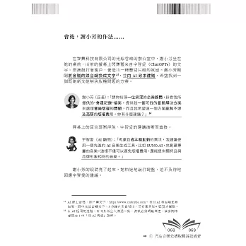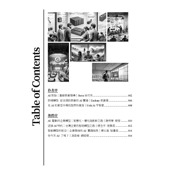 從初步構想、結構設計到最終的內容撰寫,AI技術都扮演了不可或缺的角色。我們希望通過本書不僅揭示AI在商業運用上的無限可能,還展現了AI與人類如何攜手共創更加高效和創新的成果。