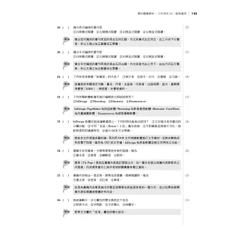 ●依照各工作項目重點觀念說明,題目完整並加上詳細解析,讓您了解多項設計、完稿及印刷基本知識,正確認識完稿製作流程。