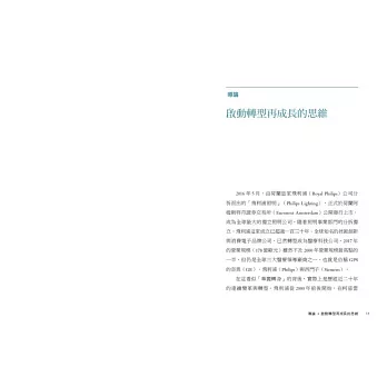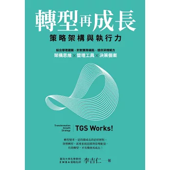 他於本書綜整重要策略研究的洞見,結合企業個案研究與參與轉型的實務經驗,歸納提出轉型再成長的整合架構(C-SOP)、實用的策略規劃導引架構(5C),以及可將策略規劃轉化爲執行力的管理工具(SPTSi);同時,更針對影響轉型執行力的組織協同、興業領導與文化形塑面向,分別提出導引發展架構與實踐訣竅,輔以模擬決策個案的刻意練習,期能有助於提升轉型再成長的效能。