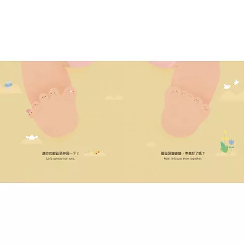 從孩子的身體出發,跟著書中圖文動動每一根腳趾頭。接著,再去踩踩草地、沙灘、海水⋯⋯嗯,是什麼樣奇妙的感覺呢?透過故事情境和想像力的累積,孩子在遊戲中,察覺和觀察自己的肢體,完整認識自我的重要過程!