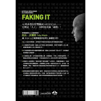 本書先由AI的開發史談起,介紹過去與當今有關人工智能的各種造假,不只限於使用AI技術的造假行為,也包括那些其實本身不含真正的人工智能技術,卻假裝是AI的造假行為。「假」(fake)是本書的核心概念,作者提醒,無論AI模仿得再怎麼像人類,它的本質畢竟是虛假的,跟真正的人類智慧有很大的不同。AI的A,Artificial這個英文詞彙除了「人造的」,同時也含有虛假的意涵在。(這點很類似中文字「偽」由「人為」所組成)。 AI不可能真正擁有感覺、情緒、自我意識、道德價值判斷,儘管它可以在表面上裝做很像是有,但終究是假的。