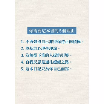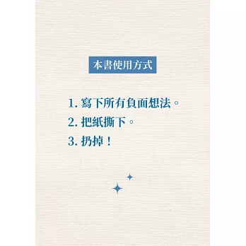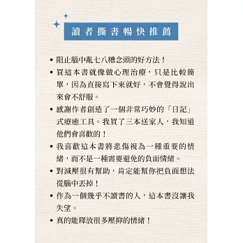 本書提供了一個簡單易行的應對機制,讓你透過書寫,宣洩各種負面情緒!