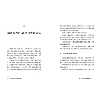 兩位作者竟把自家AI 發展架構與路徑大公開了。如果你還不知道企業要如何引進AI,這本書你一定要看完,因為書中講的都是經過驗證的最佳實務。——盧希鵬,臺灣科技大學特聘教授