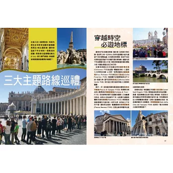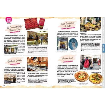 羅馬精采景點看不完,如何安排才能一日飽覽所有建築、博物館、教堂……?書中提供各區一日行程安排建議,更貼心提供各景點間的步行或通車時間,讓你不走冤枉路,一天內就可以逛完該區景點。