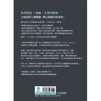 以及14篇〈迷思?事實?〉專欄,引導讀者辯證瑜伽常見主張;