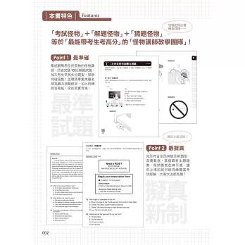 ●由三位怪物講師精心撰寫的試題本,出題方向準確,囊括常見考點。