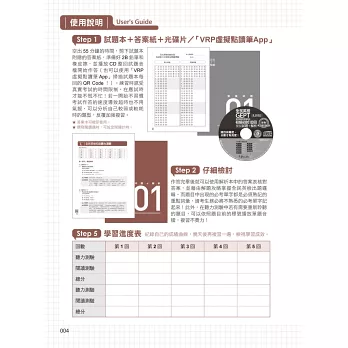 ●口說測驗則按照CD音檔完整進行一回的練習,作答時可將自己的答案錄音下來。