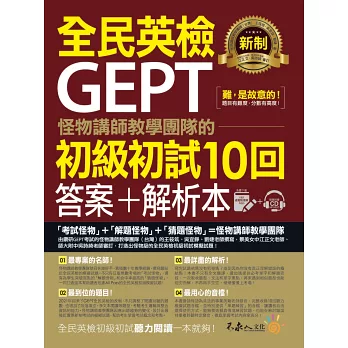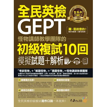 《怪物講師教學團隊的GEPT全民英檢初級初試10回模擬試題+解析》+