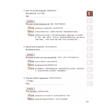 ●練習完後,參照解析本所提供的解題技巧、作文架構、口說技巧等內容,檢視自己的答案是否有注意到這些要點。