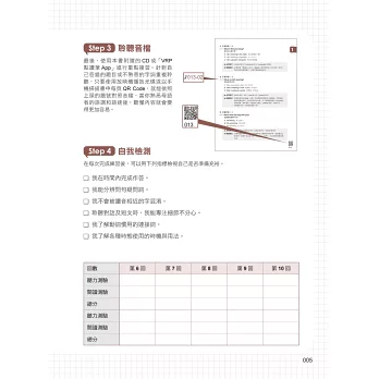●聆聽CD音檔,聽聽老師的口說示範。可以利用每回試題最後一頁的筆記頁來做練習的筆記,紀錄自己所缺少的概念,下次練習還可以再拿來確認自己是否有所進步。