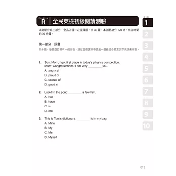 怪物講師教學團隊仔細專研全民英檢多年,對出題趨勢、考試方向瞭若指掌,將主考官最有鑑別度的考點都放入本書模擬試題,在精心設計的這10回試題中,讀者不只能習慣全民英檢初級的考試氛圍,也能默默累積高人一等的實力。