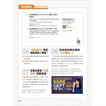 ★除文字說明之外,還可使用Youtor App,掃描右欄的QR Code,看劉婕老師親自講解例句中、文法重點中出現的必考文法。
