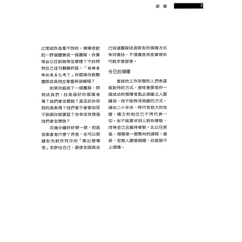 所有成功的組織都擁有一種相同的資產,那就是一群有能力領導團隊的人。他們的領導能提升個人、團隊和組織的績效,激發出所有相關人員的潛力。組織的每一個階層都需要好的領導。