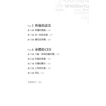 這本書正是兩位大師級作者對這些奧祕的探索,希望向這個世代揭示身體與生命的神聖之處。暢銷作家楊腓力,和他的心靈導師,享譽全球的骨科醫生及漢生病治療權威保羅.班德醫師,帶領我們用前所未有的方式,去解讀蘊藏在身體中的神聖信息,完美示範了醫學人文與信仰的結合,並展示了當代科學與信仰對話的經典。