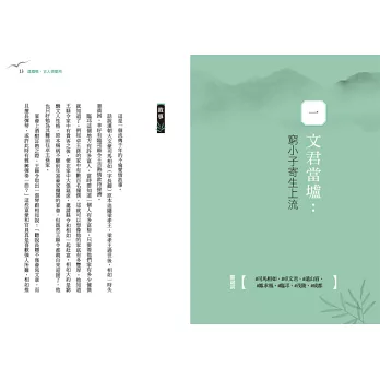 本書整理歸納了14種古代文豪愛用的典故,賞析了39位唐宋文人的130首詩詞,主要分成三部分:【故事】、【關鍵詞】、【詩詞舉例與賞析】。首先解說每個典故的由來,然後列出關鍵字,再逐一賞析相關詩詞,看這些文人是在什麼情境與背景下寫這些作品,又是如何把典故用在詩詞裡。