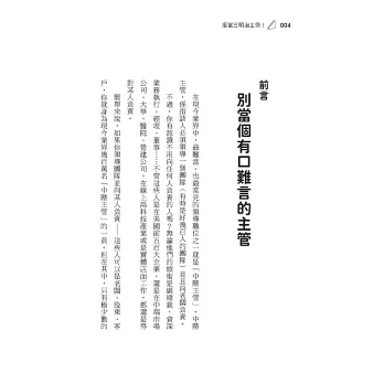 本書會幫助你改變過去對主管一職的看法,進而發揮這個位置的真正力量,找到對上及對下之間的平衡,成為會做事也會做人的真領導!
