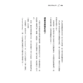 這本書清晰闡述每位身處不同立場的領導者應該做到的事。書中結合真實案例和具體行動,令這些概念更易於執行。