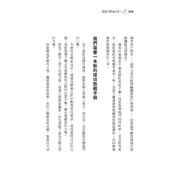 主管經常受到惡評,往往被人稱為業界的鬼見愁。納森的書有助於消除居中管理的惡名,透過創意方法釋與中階而來的力量。如果你是想跨出下一步的管理者,這就是你要的書!