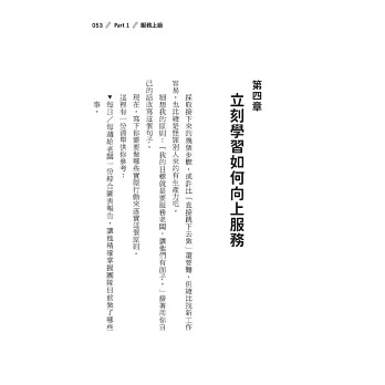 老闆與部屬都是達成您工作與人生目標的重要資源,您無須厭惡他、嫌棄他,您只需「服務老闆、培育部屬」,培養並具備居中領導的雙向智慧即可。