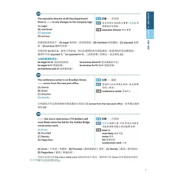 題目下方彙整字彙字義,適時加入考點的延伸用法,英文實力拾級而上。