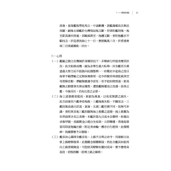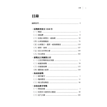 本套書《海軍戡亂回憶錄》,共分四冊,以戰役或事件分類,呈現抗戰勝利後,赴美接收八艦於1946 年歸國加入作戰以來,至1954年大陳列島特種任務艦隊的海戰,九年之間海軍軍官的戡亂作戰回憶。收錄人物有:尹秀榮、方子繩、王天池、王雨山、王恩華、王鴻聲、白樹綿、伍時烱、安國祥、何相宸、何恩廷、呂狄亞、宋鍔、李純成、李連墀、李敦謙、李樹春、沈慎修、阮成章、周槐文、周謹江、林鴻炳、邱仲明、侯尚文、侯秉忠、姜飛龍、胡嘉恆、范辛望、孫文全、孫甦、徐集霖、桂光誠、桂宗炎、馬年楨、馬焱衡、高舉、崔之道、康肇祥、張仁耀、張苗禾、張殿九、敖維駒、曹元中、梁序昭、郭勳景、陳仕傑、陳再晨、陳安華、陳志文、陳東海、陳振夫、陳振民、陳清生、陳紹平、陶滌亞、陸亞傑、景立承、馮啟聰、黃光朔、黃克榮、黃崇仁、黃紹容、黃揭掀、楊汝聰、楊松泉、楊鴻庥、葉伯秋、董沐曾、鄒堅、鄒新命、雍成學、趙剛、趙梅卿、齊鴻章、劉征、劉殿章、劉廣凱、劉德凱、蔣豪達、蔣錫山、黎士榮、錢詩麒、儲文思、謝克武、謝祝年、韓國華、聶長孚、魏濟民、關鏞、蘇紹業等