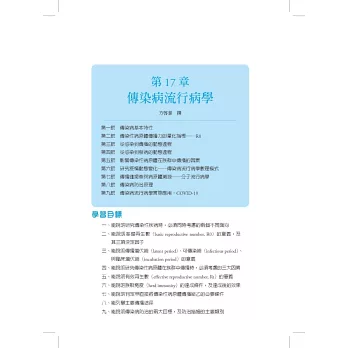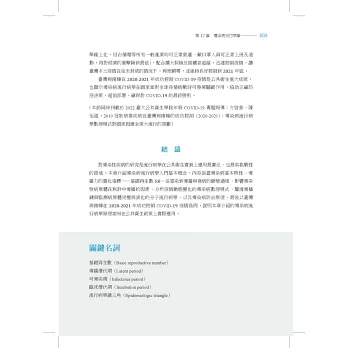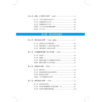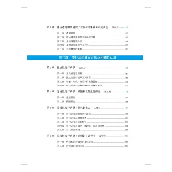 這本流行病學專書的內容涵蓋流行病學原理與基本測量、建立假設及因果關係的判斷、流行病學研究方法及相關性統計、流行病學結果闡釋之影響因素、流行病學的應用以及兩個研究個案,共6 篇20 章。透過各章節的鋪陳,將流行病學作完整且具邏輯序列的鋪陳,閱讀本專書將能對流行病學的原理、方法學及應用範疇獲得完整的學習。此外,兩個研究個案的提供,將國內外對健康有重大影響的兩個疾病,B 型肝炎及心血管疾病,描述流行病學如何透過嚴謹的研究設計來確認危險因子,並以研究成果作為科學實證,提出系列的公共衛生與臨床治療的政策,並取得重要的防治成果。讀者透過兩個實際個案的學習,對於流行病學針對重要公衛議題,從問題界定、危險因子研究到以研究實證作為基礎的公共衛生防治政策的制定與落實,有了完整的瞭解,對於未來應用流行病學知識,從事疾病的預防將具備實務的能力。