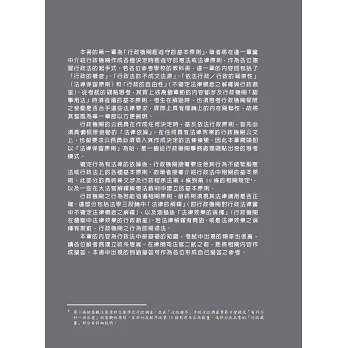 很不幸卻又可幸的,我似乎從開始書寫起,對這本書的基本想像沒什麼改變過。我總希望在極度功利的國考市場中,堅持某種陳述事物的方式。我希望文字是親近讀者的,讓那些在大學期間無緣行政法的讀者,能擁有一個接受行政法的可能性。我希望內容是清楚的,但不能為了方便理解而錯誤詮釋。法律理論之所以有其重要之處,是因為理論是貫穿時間與空間的,學習法律的過程不僅僅是專業性的訓練,也是法律人對生長於這塊土地的法律制度的人文歷史回顧,包括理論如何而來,向哪裡而去。作為教學者,這或許是妥協的最後防線,我相信這也是任何一個教學者應遵守的道德界線(ethische Grenzen)。法律人以法律為冠詞,或用Luhmann的話─以法律為元素,藉此區隔自我與他群;那作為冠詞的法律對法律人而言,其意義不僅是(也不應僅是)優越感的象徵,而是一種責任(Verantwortung)。而責任與自由相互關聯,唯有能為自己的行為(Handlung)承擔責任,人才能是自由的,而我們也才能是自由的。
