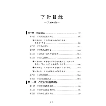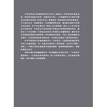 本次改版再次朝著體系書的方向前進,將原本臃腫的單冊拆分為上下兩冊,上冊從「行政機關應遵守的基本原則」到「行政程序」,完整的處理整個行政程序法與各種行政行為,其中新增「行政程序」單章,單獨把行政程序法第92條行政處分章節之前的純程序規定拉出來介紹。下冊由行政罰與行政執行開始,涵括整個行政救濟體系(訴願法、行政訴訟法、國家賠償法、損失補償法),最終收尾於行政組織法,且擴增行政組織法章節,包括組織法總論、公務員法與地方自治法各論。除了補足新章節之外,前幾版說明較簡略的章節全面重新整理、校正筆誤與錯字、並增補新節,例如行政訴訟的程序規範(第一審、上訴與抗告、再審與重新審理、簡易訴訟程序到都市計畫審查程序等,並補足新文章)、行政執行法補足公法上金錢給付義務、債務人異議之訴、執行法草案介紹、行政罰法補足裁罰程序與管轄問題、組織法總論補足公物與公營造物法、行政法人法、中央行政機關組織基準法等一試選擇題熱門區域、公務員法補足公務員懲處、懲戒與救濟,讓體系更趨完備。本書的終極目標是建立一本具有查閱功能的行政法字典,盡可能收納所有行政法體系,並用簡潔的方式介紹給讀者們。完整的體系是安全感的同義詞,而排除掉艱澀的文字後,建構完整的體系則只需要決心。而誠如費倫所說,需要的就只有決心,因為拼命累積的東西絕對不會背叛自己。