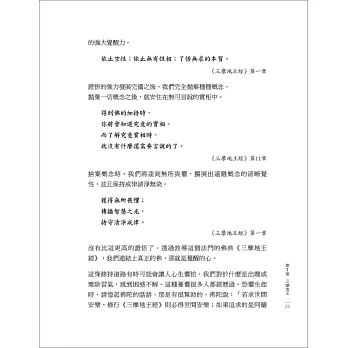 應用本書指導的任何人,都可以從恐懼和不滿足轉變為自信和喜悅。本書所包含的佛法禪修精要,是來自一位正統佛法上師,他從佛法經典中擷取教言,提供給希望能成為這個混亂世界中一盞明燈的人。