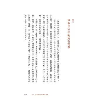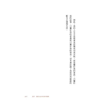 ‧書中有很多觸動內心的句子,讓我不斷反覆思考。在充滿競爭的社會,這本書是為想追求美好人生的現代人而寫。
