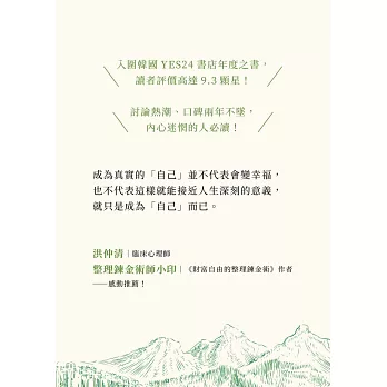 「成為真實的『自己』並不代表會變幸福,也不代表這樣就能接近人生深刻的意義,就只是成為『自己』而已。」看到這段文字,心中有深深的觸動。