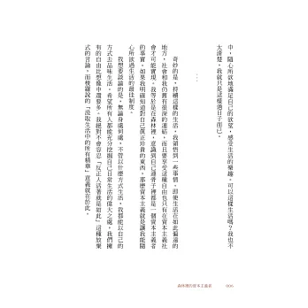 「成為」這兩個字,在英文中是以「becoming」來理解,這是一個現在進行式。《森林裡的資本主義者》這本書就是一個生活實驗的過程,我很歡喜能閱讀這本書,這也是我正成為自己,所經歷的美好風景之一。──洪仲清,臨床心理師