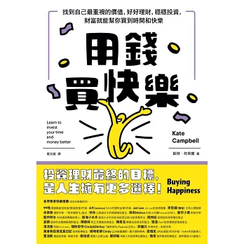 這本書不僅是不可或缺的理財指引,也是哲學指南,帶你釐清人生的目標與優先次序。凱特‧坎貝爾告訴我們,不僅要聰明投資金錢,也要將一去不復返的時間,投資在有意義的地方。——Glen Jamesmy millennial money播客創辦人兼主持人