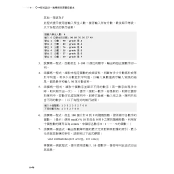■ 本書除了涵蓋程式設計的基本主題,還包括物件導向程式設計的特性,如封裝、繼承、多型、多載函式與運算子、函式樣板、類別樣板以及標準樣板函式庫。