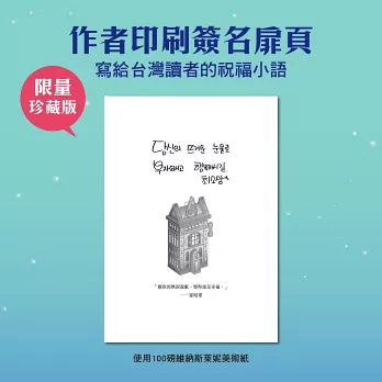 三、作者印刷簽名扉頁,寫給台灣讀者的祝福小語。